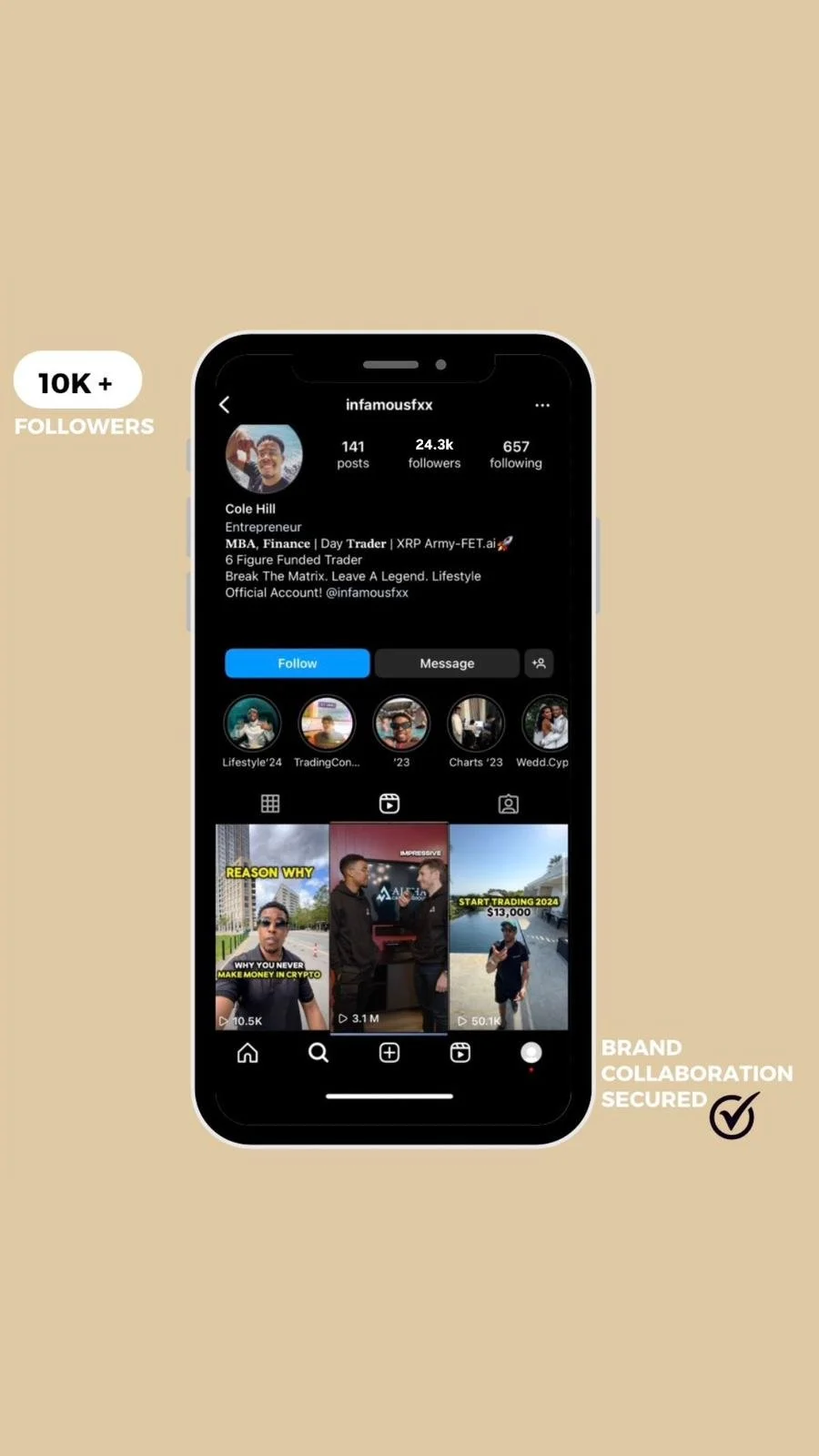This strategic partnership yielded impressive results. With my guidance, @Infamousfxx secured a lucrative brand collaboration, which not only elevated his profile but also contributed to his financial success. Additionally, he experienced a substantial growth in his following, with an increase of over 10,000 followers.